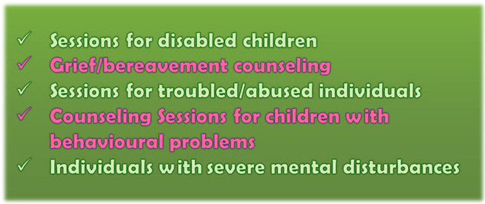 Such animal-assisted therapy sessions/activities have been particularly successful in the following